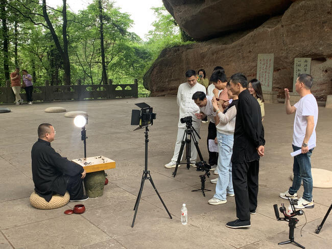 环境公司在烂柯山组织党员拍摄自编自导自演的廉政文化短视频《博弈》/衢州水业集团 供图